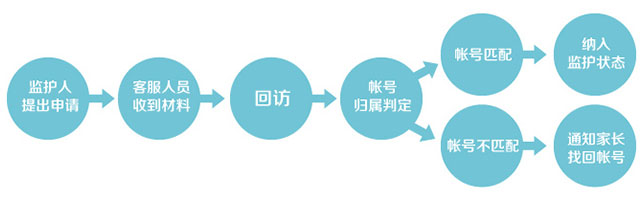 A:如果申请人提交资料中的申请人或被监护人的身份证号码与被监控账户注册信息中的身份证号码一致,我们将按与您协商的结果对被监控账号立刻进行处理;如申请人提交的资料中的申请人或被监护人的身份证号码与被监控账户注册信息中的身份证号码无任何关联,为保障申请人的需求能够得到处理,以及账号使用人的利益,我们需要申请人补充提供相关的信息,以确定真实的账号。